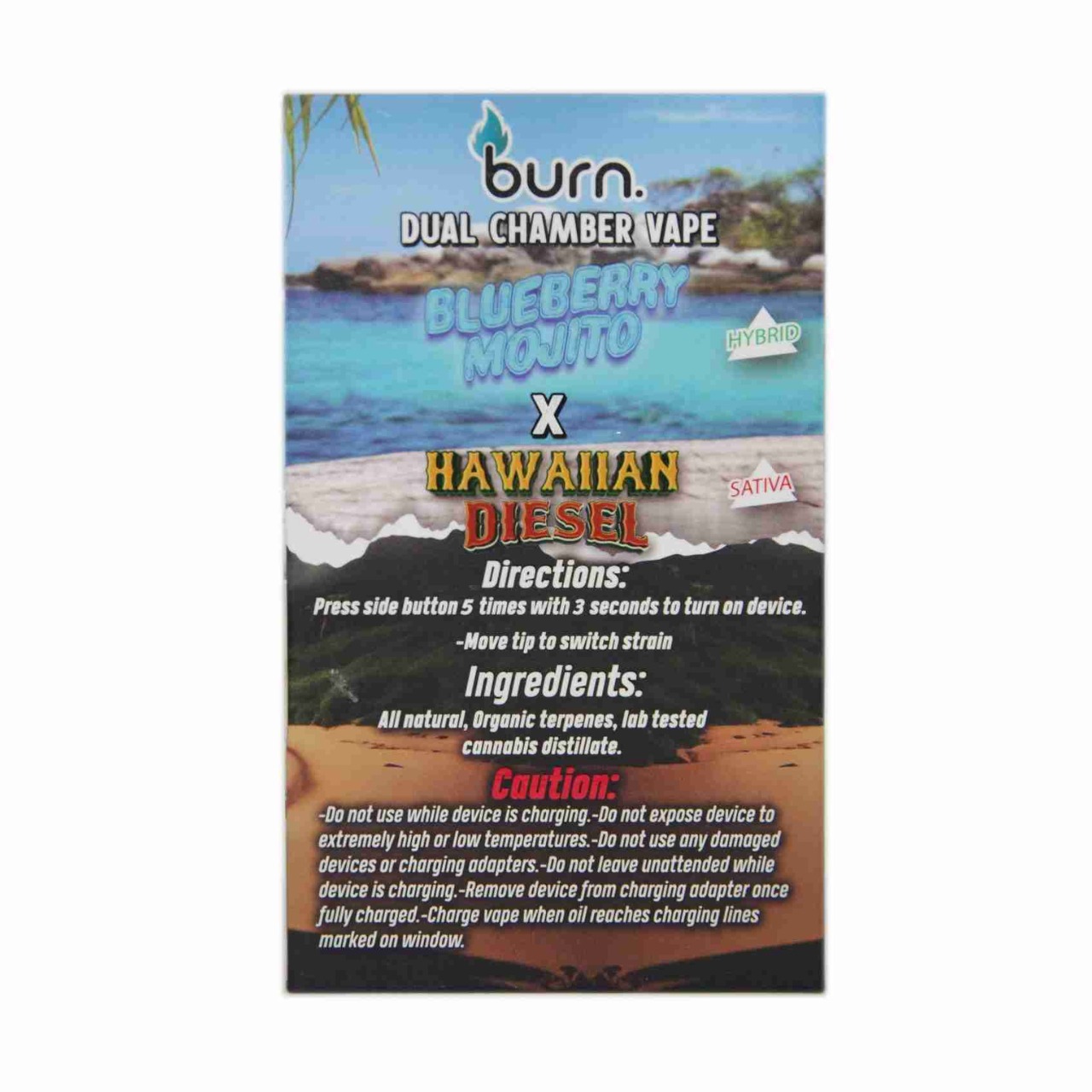 Burn Dual Chamber Vape – 6g (Blueberry Mojito + Hawaiian Diesel)