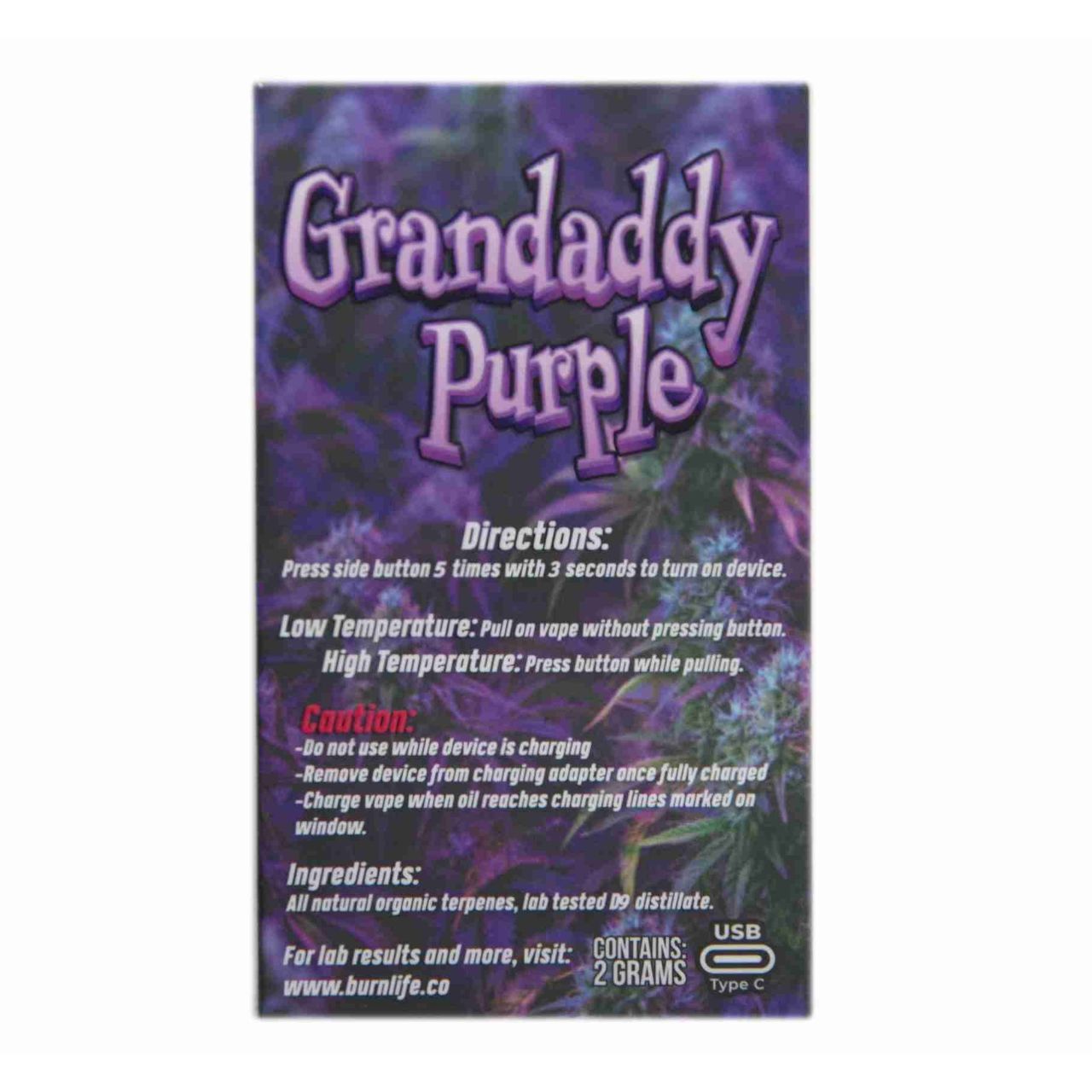 Granddaddy Purple Live Resin Vape Pen by Burn