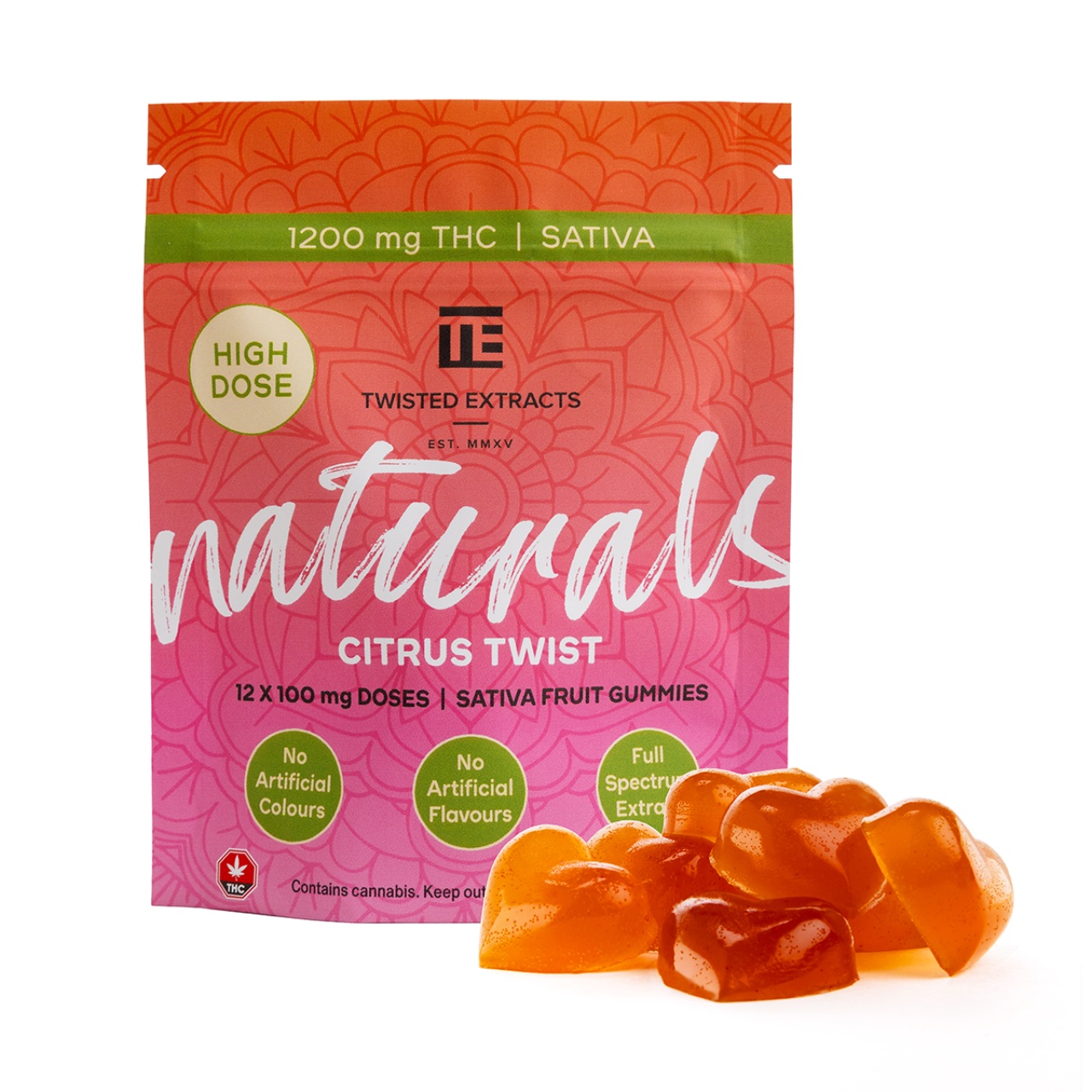 Each package of Twisted Naturals contains 12 x 100 mg gummies.